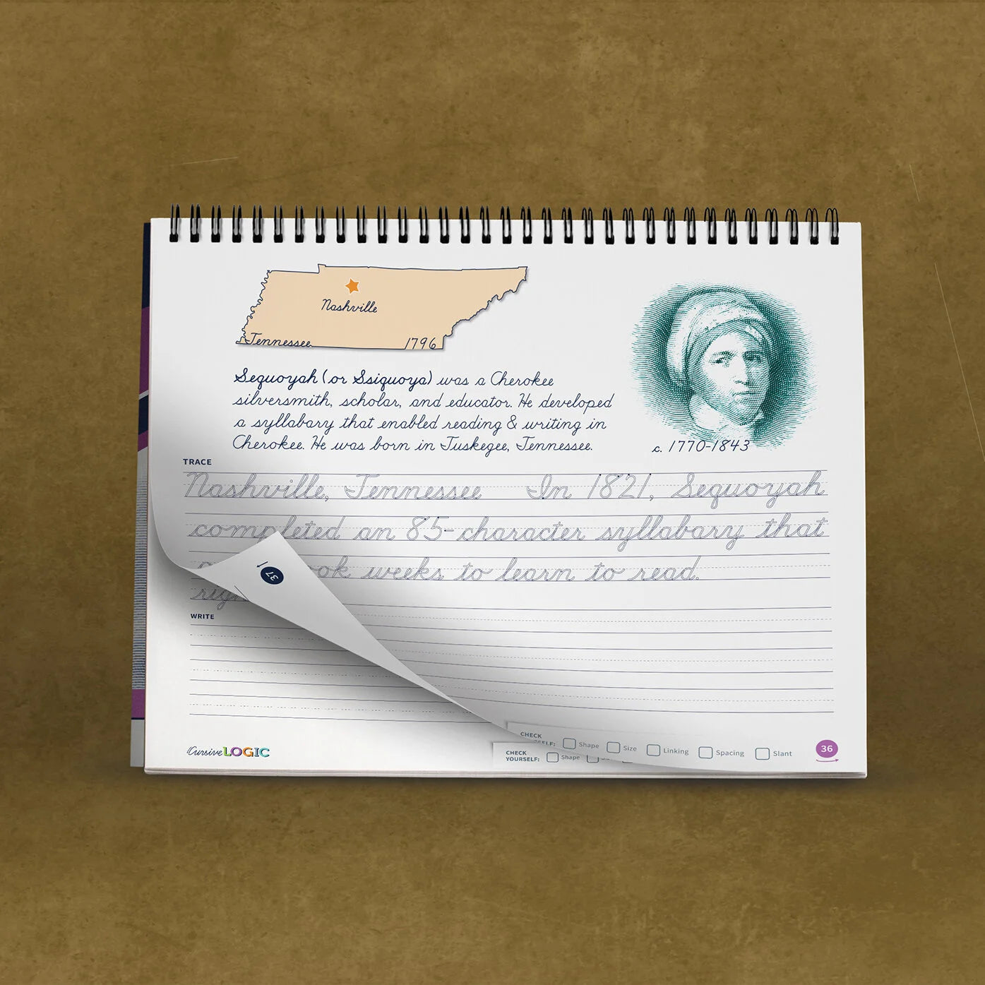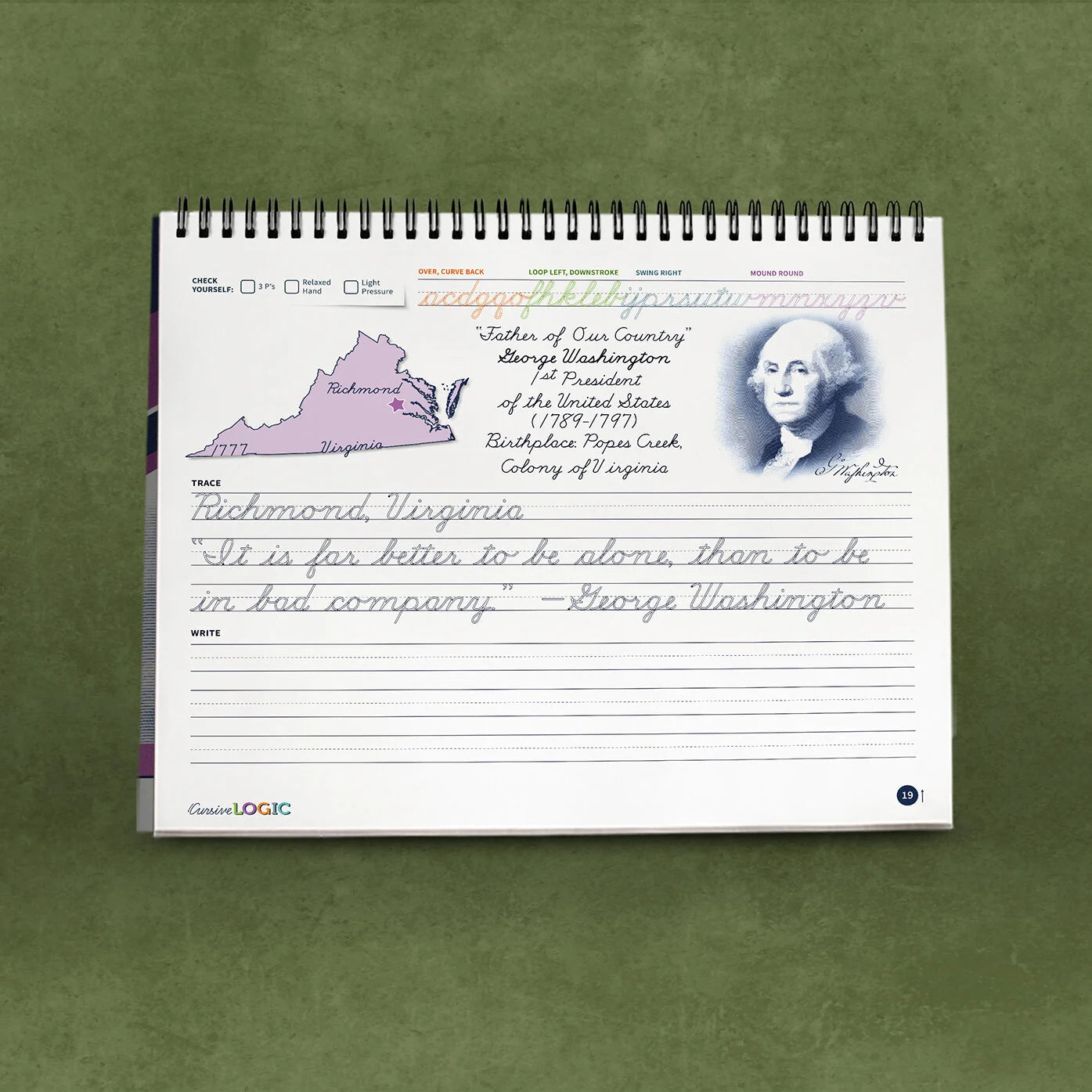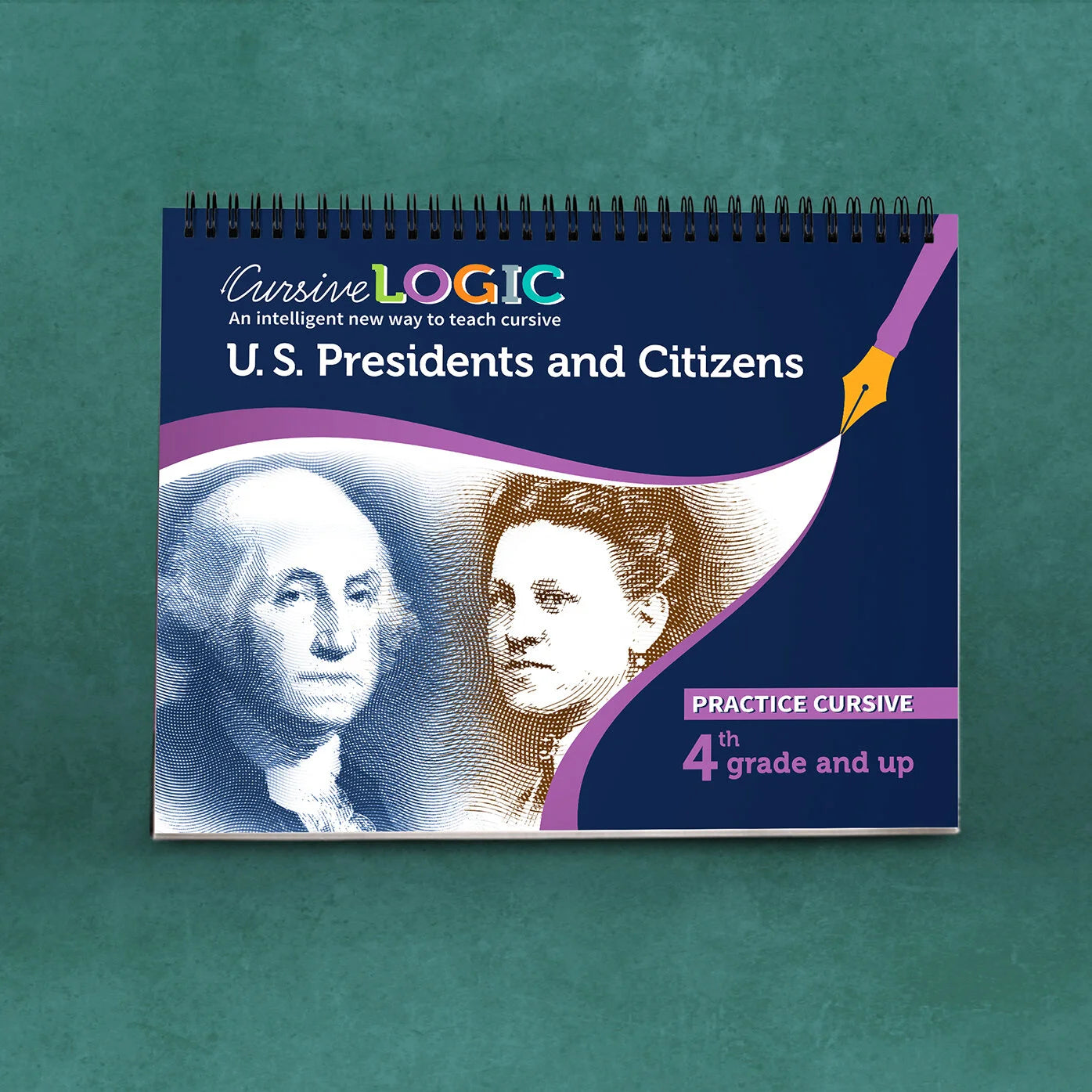 Designed to align with 4th grade history curriculum, United States Presidents and Citizens introduces students to fifty great Americans — one born in each state. Each lesson includes a full review of the lowercase alphabet, provides students with two inspirational quotations to trace and write, and prompts students to check the quality of their own work. This workbook begins with a full review of the CursiveLogic method and uses standard 3rd-4th grade lines. United States Presidents and Citizens is designed to be used by students who have completed CursiveLogic: Learn Cursive (All Grades) and continues students’ progress in the CursiveLogic method.